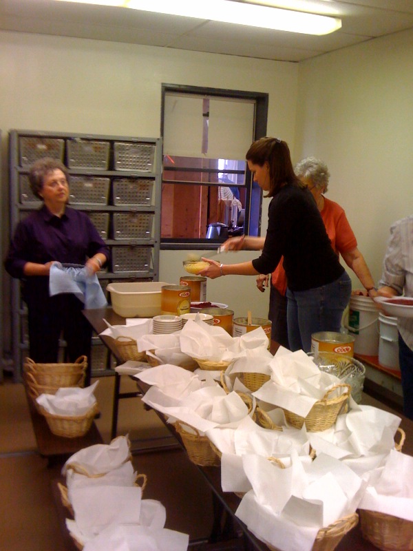 I'm happy to share a few photos I took before the voracious lunch crowd arrived. I'm getting to know a lot of the names (it's only taken me 3 1/2 years), but since I still don't know everyone's name, I'll do the captions in menu-style so you'll know what everyone was preparing. Keep in mind, some of the people you see here also worked yesterday (and the day before I think), and stayed again all day today. So this, by far, isn't everyone who made it all happen.